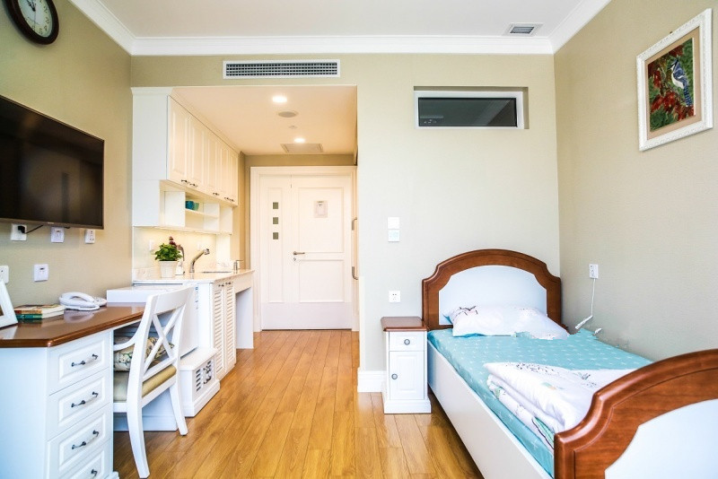 泰頤春養老中心共設有200余張床位,提供單人間、雙人間、雙人套間和四人間等舒適房型。每個房間都配有液晶電視、冰箱、中央空調、獨立新風凈化系統、地板采暖、24小時熱水供應等生活配套設施。泰頤春養老中心重視環保要求,所有裝修材料、定制家具的空氣排放標準均達到歐洲E0級要求。每個床位均裝有醫護對講系統,衛生間安裝緊急報警系統,同時,在樓內公共空間和室外活動區域實行24小時安全監控。樓層護理站和控制中心聯動反應,確保醫護人員第一時間到達長輩身邊。室內多功能生態四季廳匯聚多類景觀小品、綠化植被,帶來室內鮮氧;室外配套花園,舒展多彩老年生活。